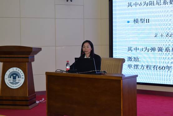 李雪梅教授作题为“单摆运动微分方程的稳定与不稳定性”的学术报告。该报告主要介绍了单摆运动微分方程的稳定与否的判定与控制。