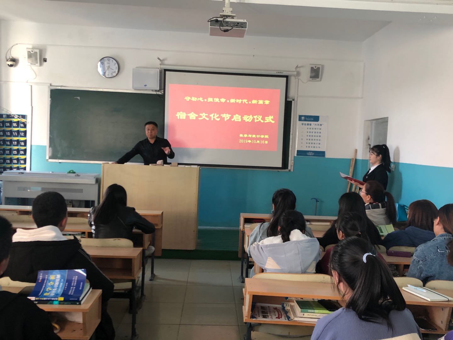 为响应公司创建文明宿舍的号召,营造良好的宿舍文化氛围,提高员工美化环境的意识,创建团结、先进、和谐、文明的宿舍环境,数学与统计公司于2019年10月16日下午,在笃学楼404举办了第十一届宿舍文化节启动仪式。党总支副书记宋旭霞、学工办主任安永红、辅导员王爱文以及各班班长、宿舍长共同参加了本次活动。
