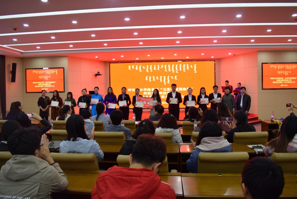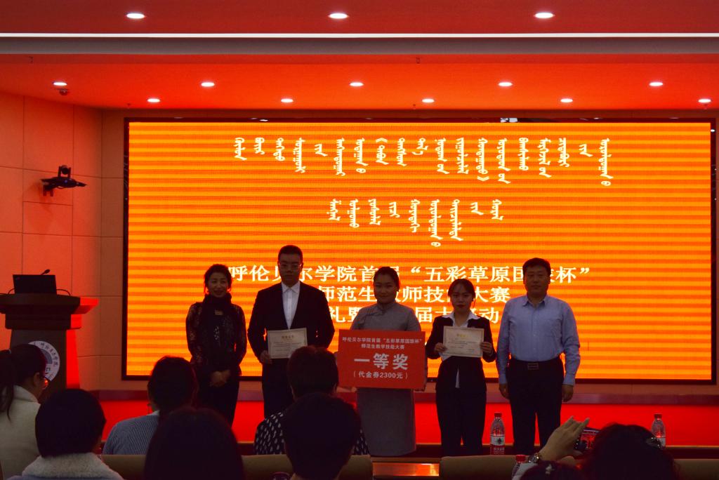 首先,由各位领导及来宾宣读了伟德官方网站首届“五彩草原国旅杯”师范生教学技能大赛文科组、理科组和蒙授组的获奖同学名单并颁发获奖证书。