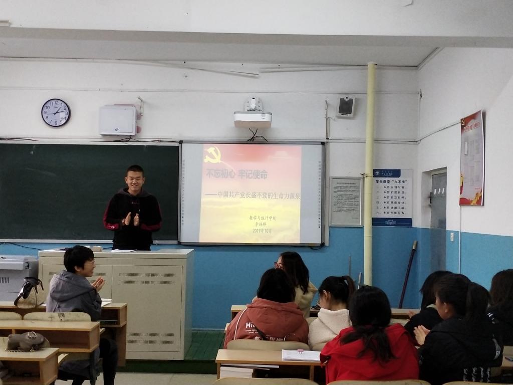 首先,组织委员李玮晔同学带领大家回顾了中国近代史上对党的发展和壮大影响较大的几件大事,通过图片的形式,生动的再现了我们党一路走过来的曲折岁月。从多个方面阐释了作为一名党员,为什么要坚持“不忘初心”。