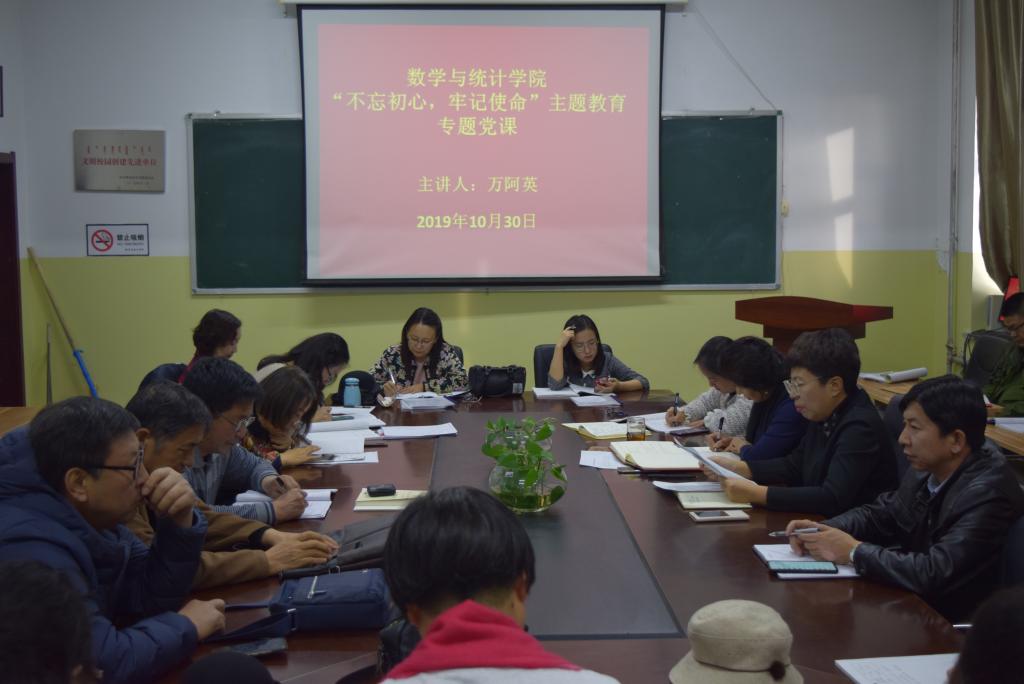 为深入贯彻全国教育大会精神,坚持为党育人守初心,立德树人担使命,推进“三全育人”综合改革,全面提升人才培养质量。10月30日下午,数学与统计公司经理万阿英在笃学楼410会议室以《员工忙起来、教师强起来、管理严起来、效果实起来》为主题为全体教职工上了一节专题党课。