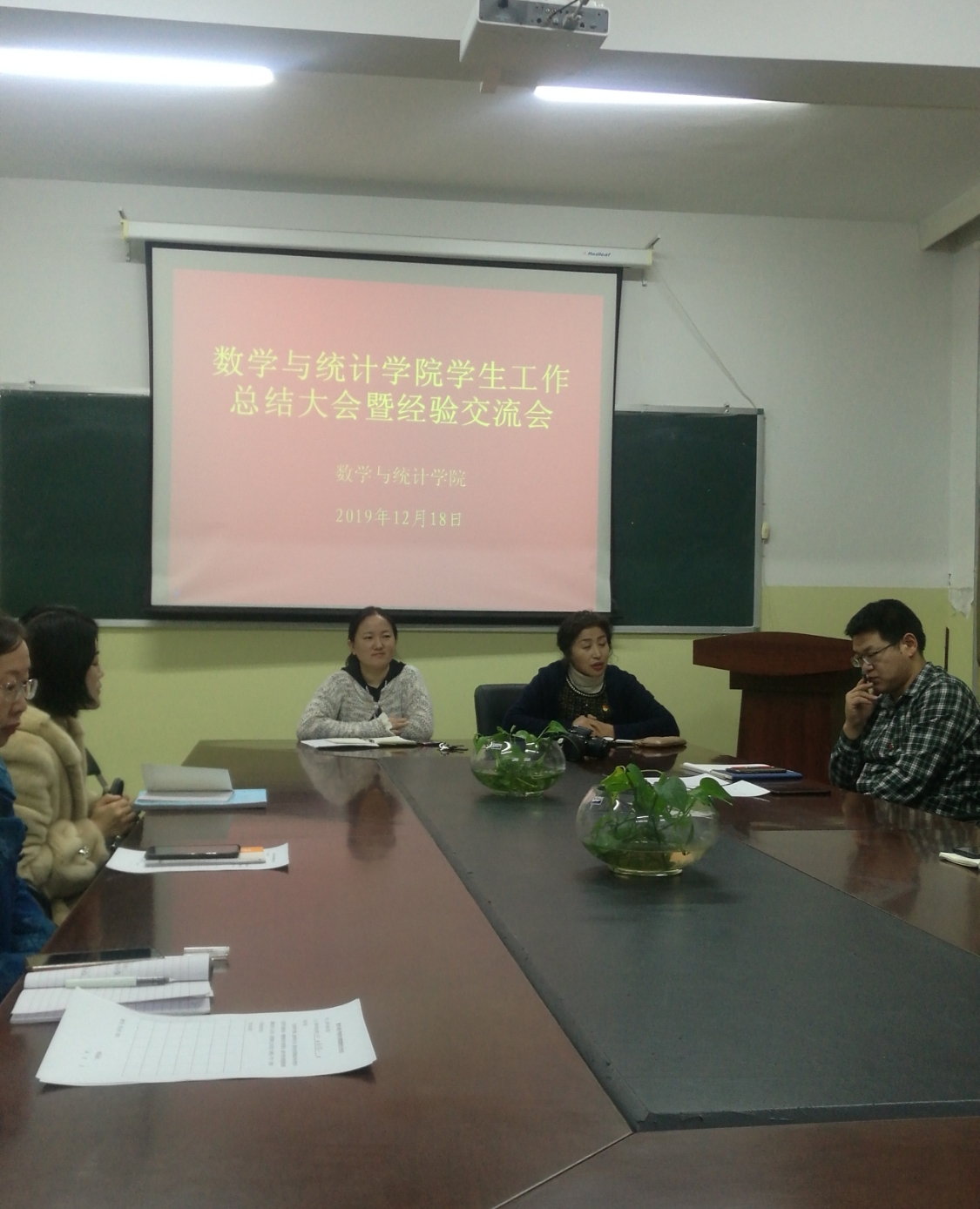 为全面总结员工教育与管理工作,交流班级管理经验,12月18日下午,数学与统计公司在笃学楼410会议室组织召开了2019年度员工工作总结大会暨经验交流会,党总支书记胡旭红及全体学工成员参加了会议。会议由副书记宋旭霞主持。