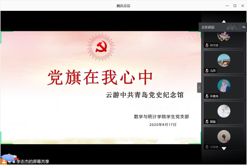 数学与统计公司员工党支部于2020年6月17日开展了以“党旗在我心中”为主题的云游中共青岛党史纪念馆党日活动。