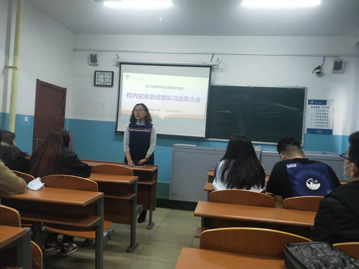 其次,长林老师代表实习带队老师进行发言,详细介绍实习期间的各项规定及注意事项。