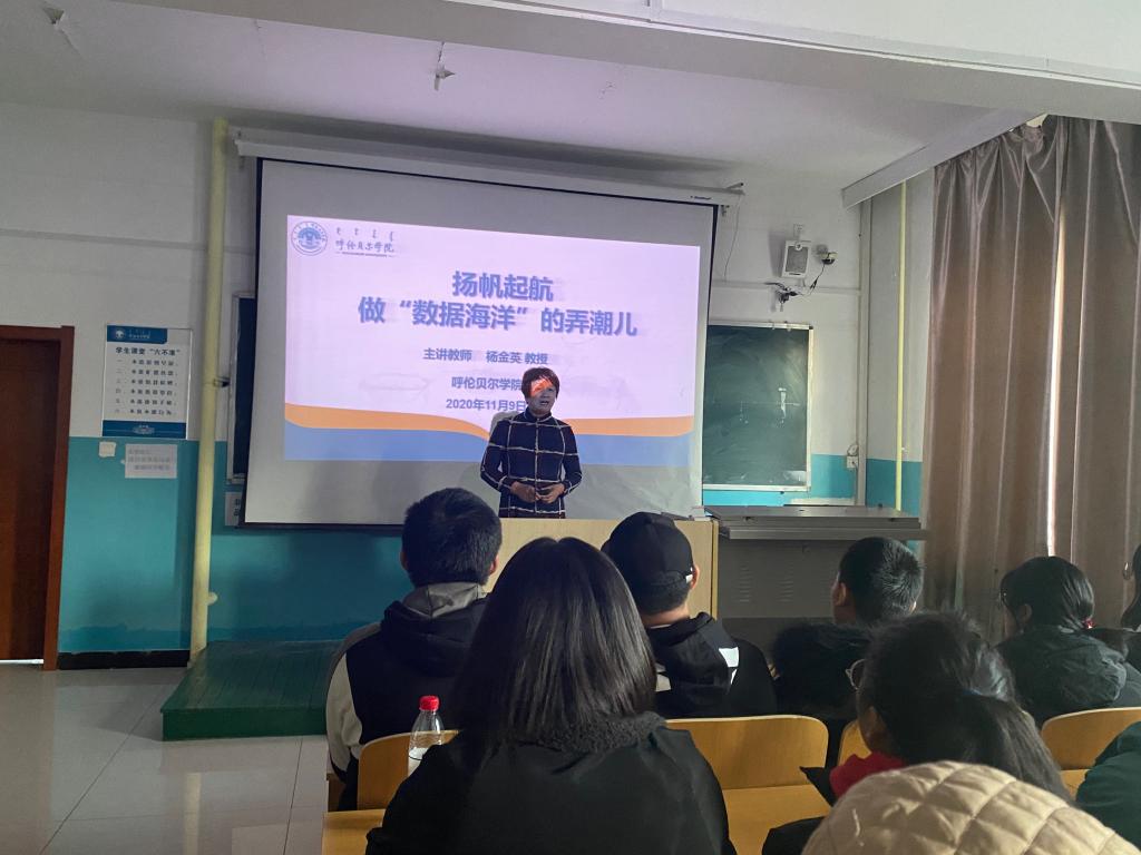 杨金英教授通过认识大数据、大数据的作用、数学、统计学与大数据的关系、争做“数据海洋”的弄潮儿四个话题为我们讲述了大数据是多元数据汇聚的数据科学,对于我们每个人生活都有很大的影响、对于未来的职业选择及学科交叉会起到积极的推动作用。