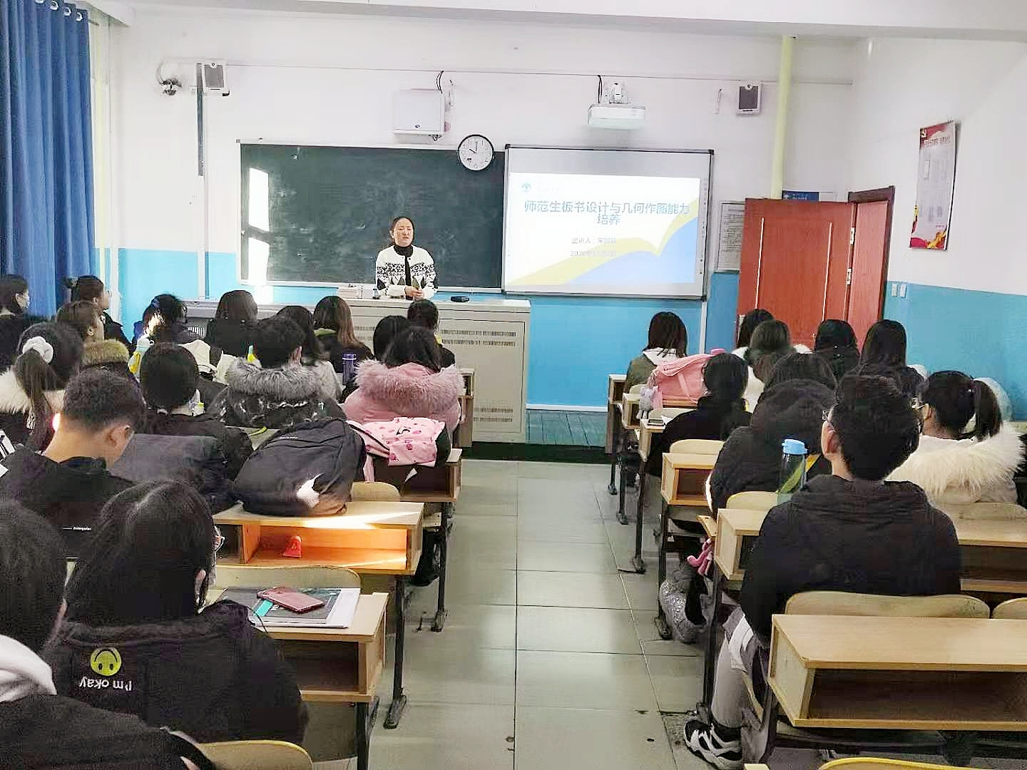 为加强对师范生的教育培养,促进师范生教师专业能力的提升,数学与统计公司于12月2日上午在笃学楼405组织开展“师范生板书设计与几何作图能力培训”讲座,由副书记宋旭霞教授担任主讲,2018级数学与应用数学专业全体同学参加了培训。
