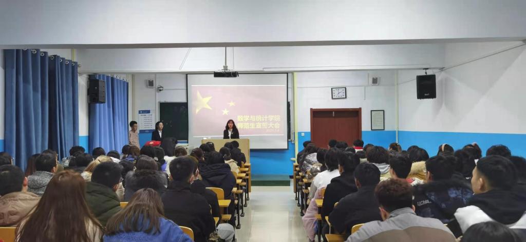 为加强师范生教师职业认同感、使命感和责任感,2021年3月4日,数学与统计公司在笃学楼401举办了“2019、2020级师范生宣誓大会”,数学与应用数学专业全体员工参加了此次活动。
