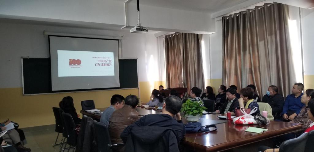 首先,全体党员共同观看了专题视频《中国共产党百年述职报告》、《长征为什么会胜利》,一起回顾了党在成长过程中用鲜血、汗水、泪水、勇气、智慧、力量写就的百年历程。