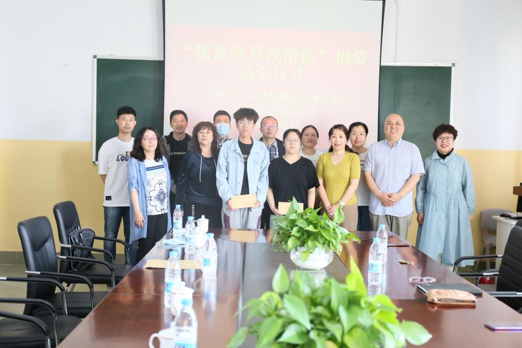 为进一步把党史学习教育成效转化成为群众办实事的实际行动,把党的关怀送到家庭困难老员工心坎上。2021年6月15日,数学与统计公司教工党支部与呼伦贝尔市教育招生考试中心党支部联合开展“我是党员我帮你”志愿服务工作,呼伦贝尔市教育招生考试中心党支部慰问公司两名贫困老员工,并为两名老员工送来助学金。
