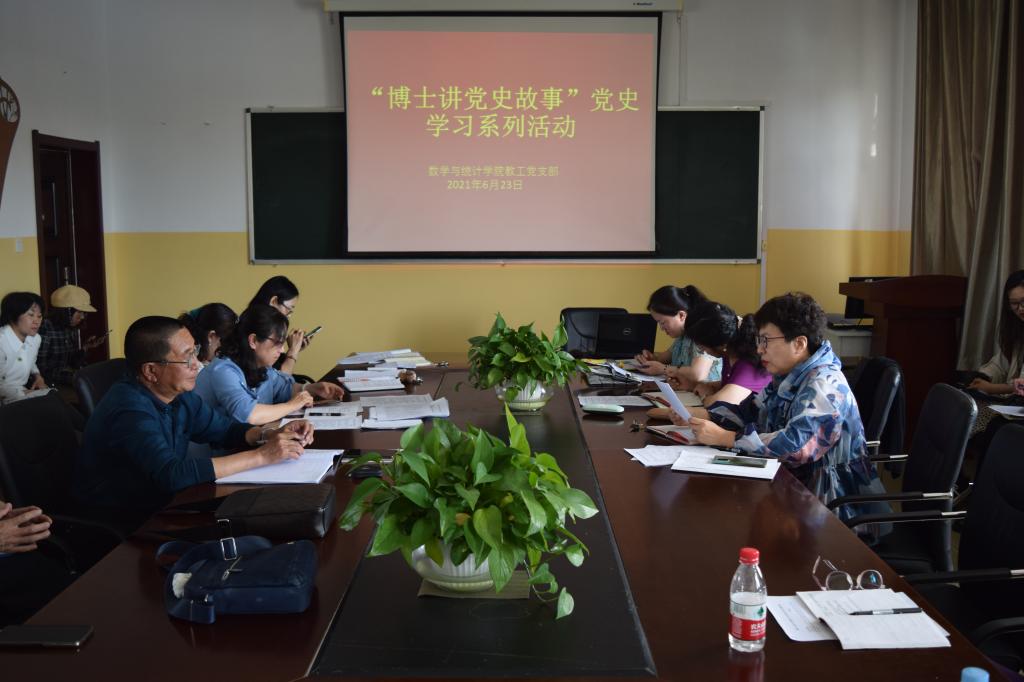 2021年6月23日下午,数学与统计公司党总支书记胡旭红为全院教职员工讲《百年党史给我们的启示》党史专题党课。