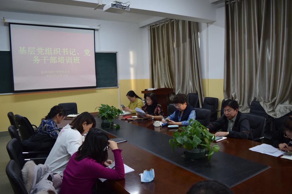 为进一步落实党建工作责任,全面推进党支部标准化规范化建设,切实提高基层党组织书记及党务工作者的履职能力,2021年11月10日下午,数学与统计公司基层党组织书记和党务干部培训班在笃学楼410室开展集中学习,会议由党总支书记胡旭红主持。