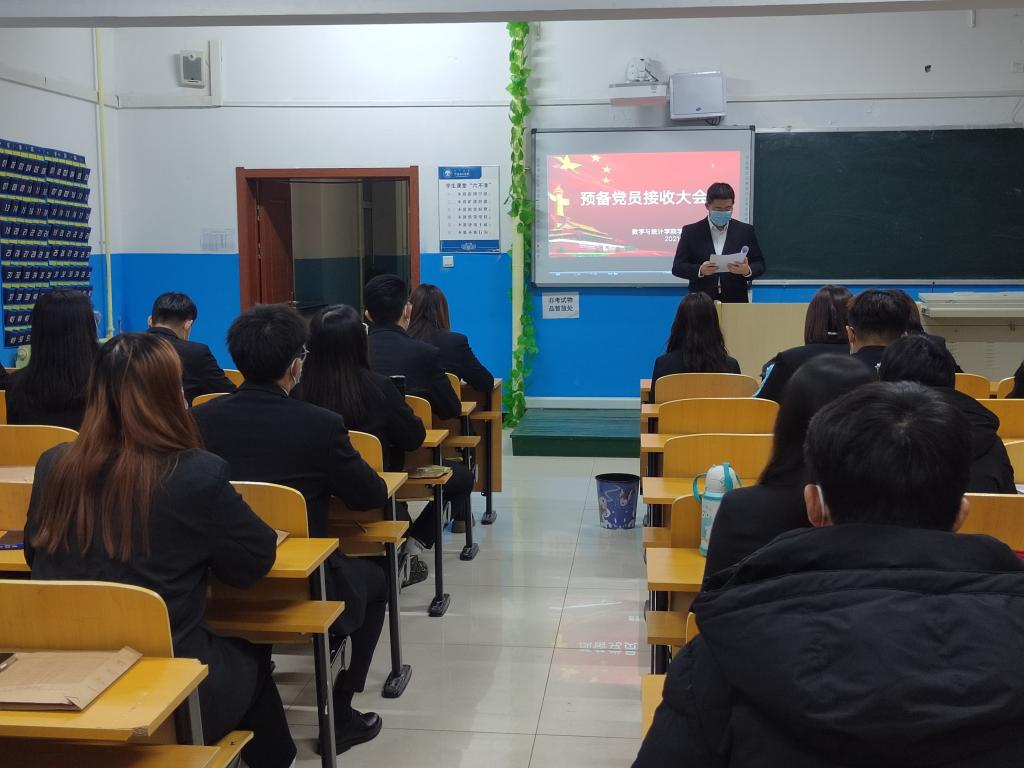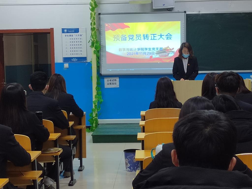 2021年11月29日,数学与统计公司员工党支部于笃学楼413教室举行了预备党员转正暨预备党员接收大会,会议由员工党支书记何春颖老师主持,支部全体党员、发展对象及入党介绍人参加了会议。