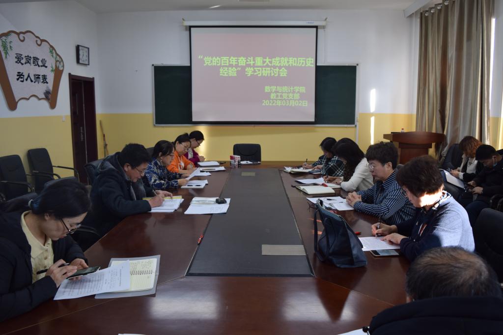 2022年3月2日下午,数学与统计公司在笃学楼410会议室,召开了“党的百年奋斗重大成就和历史经验”学习研讨会。会议由杨贵玉老师主持,全体党员参会。