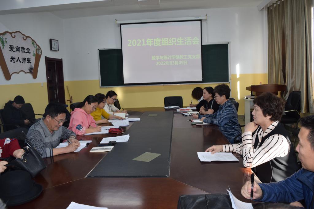 3月9日下午,数学与统计公司党总支教工党支部在笃学楼410会议室组织召开了2021年度组织生活会。会议由支部书记杨贵玉主持,全体教工党员参会。