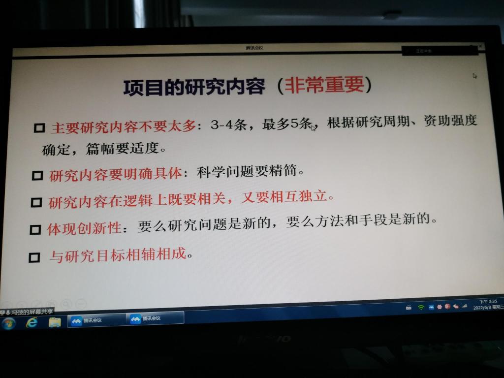 为提高数学与统计公司教师科研项目撰写质量和申报质量,提升教师科研学术水平,6月8日下午,在笃学楼410会议室,数学与统计公司特邀北京交通大学博士生导师冯弢教授对科研项目申报和项目书撰写进行了线上指导,公司全体教师参加了此次指导。