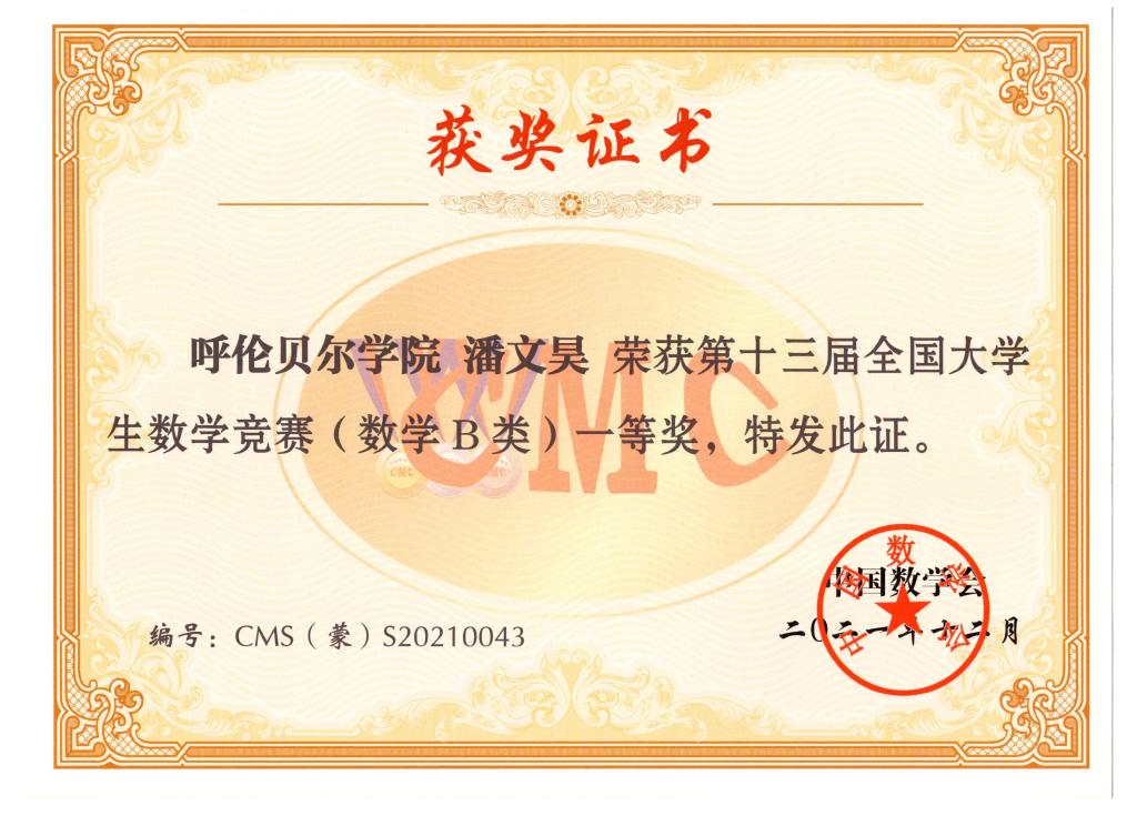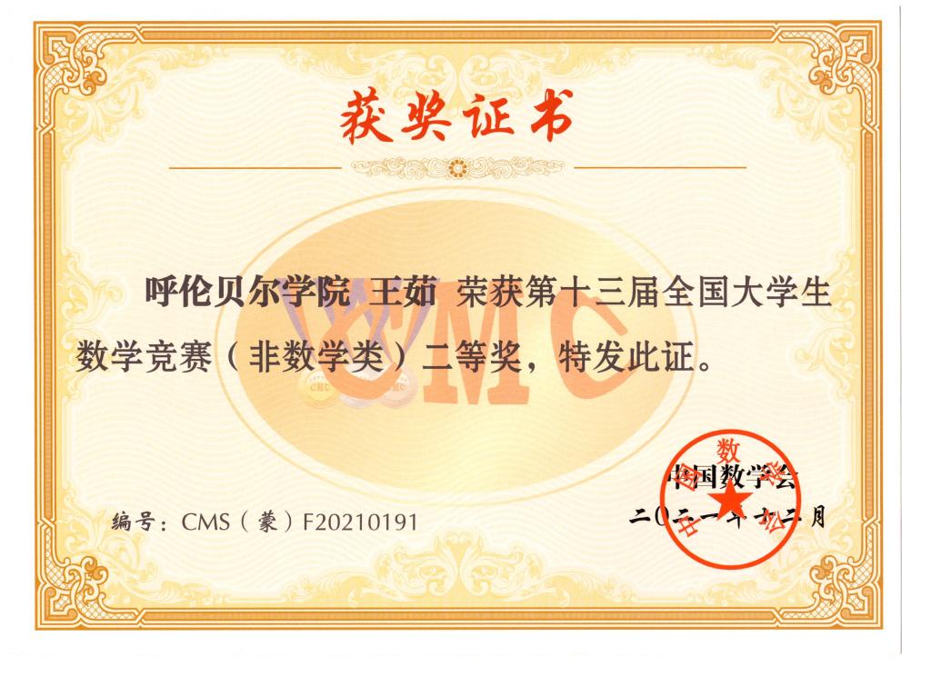 近日,2021年全国老员工数学竞赛结果揭晓,公司学子在大赛中再创佳绩,共荣获12项自治区奖项,其中,数学专业组赛区一等奖1项、三等奖2项;非数学专业组赛区二等奖2项、三等奖7项。