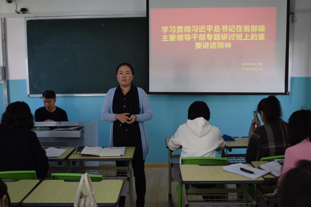 8月31日下午,数学与统计公司召开全体教职工会议,传达学习贯彻习近平总书记在省部级主要领导干部专题研讨班上的重要讲话精神。数学与统计公司党总支书记宋旭霞主持会议。