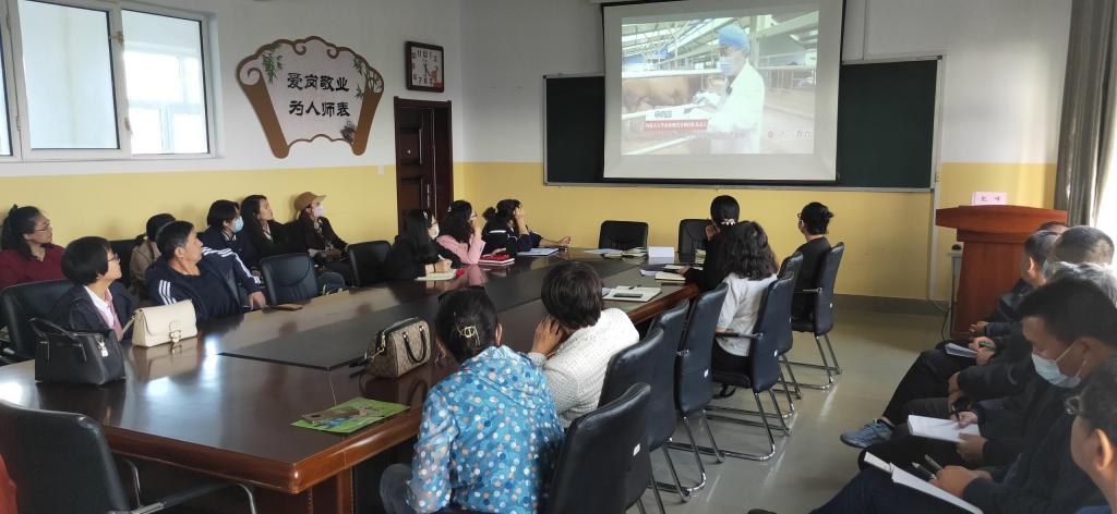 会上,全体教师共同学习了第二批“黄大年式”的教师团队内蒙古大学李光鹏教授带领的家畜现代生物育种团队事迹,李广鹏教授带领团队攻克了我国新品种肉牛种源的“卡脖子”核心技术,为内蒙古高牧业高质量发展书写了浓墨重彩的一笔。他们既是国家富强的贡献者,也是荣誉的获得者。李广鹏教授团队心有大我、至诚报国,敢为人先的精神,是黄大年精神的继承和发扬。