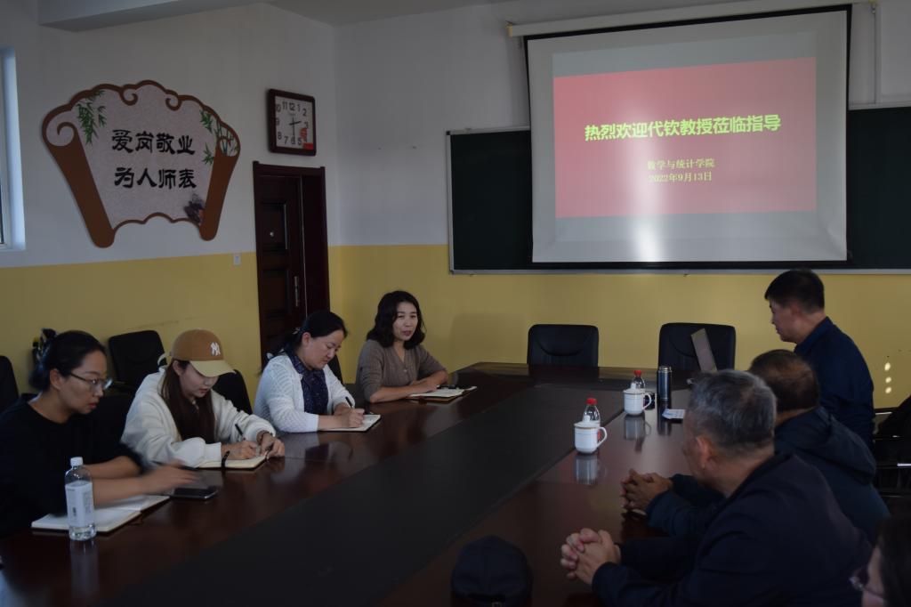 9月13日下午,数学与统计公司邀请内蒙古师范大学代钦教授指导教育硕士学科教学(数学)研究生导师论文选题工作,由张桂芝经理主持会议,党总支书记宋旭霞及研究生任课教师参会。