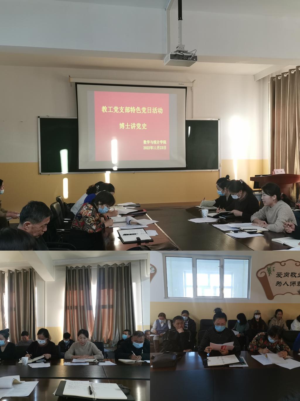 为进一步扎实推进党史学习教育,强化思想引领,传承革命意志,数学与统计公司教工党支部于11月23日在笃学楼410开展特色党日活动—博士讲党史。
