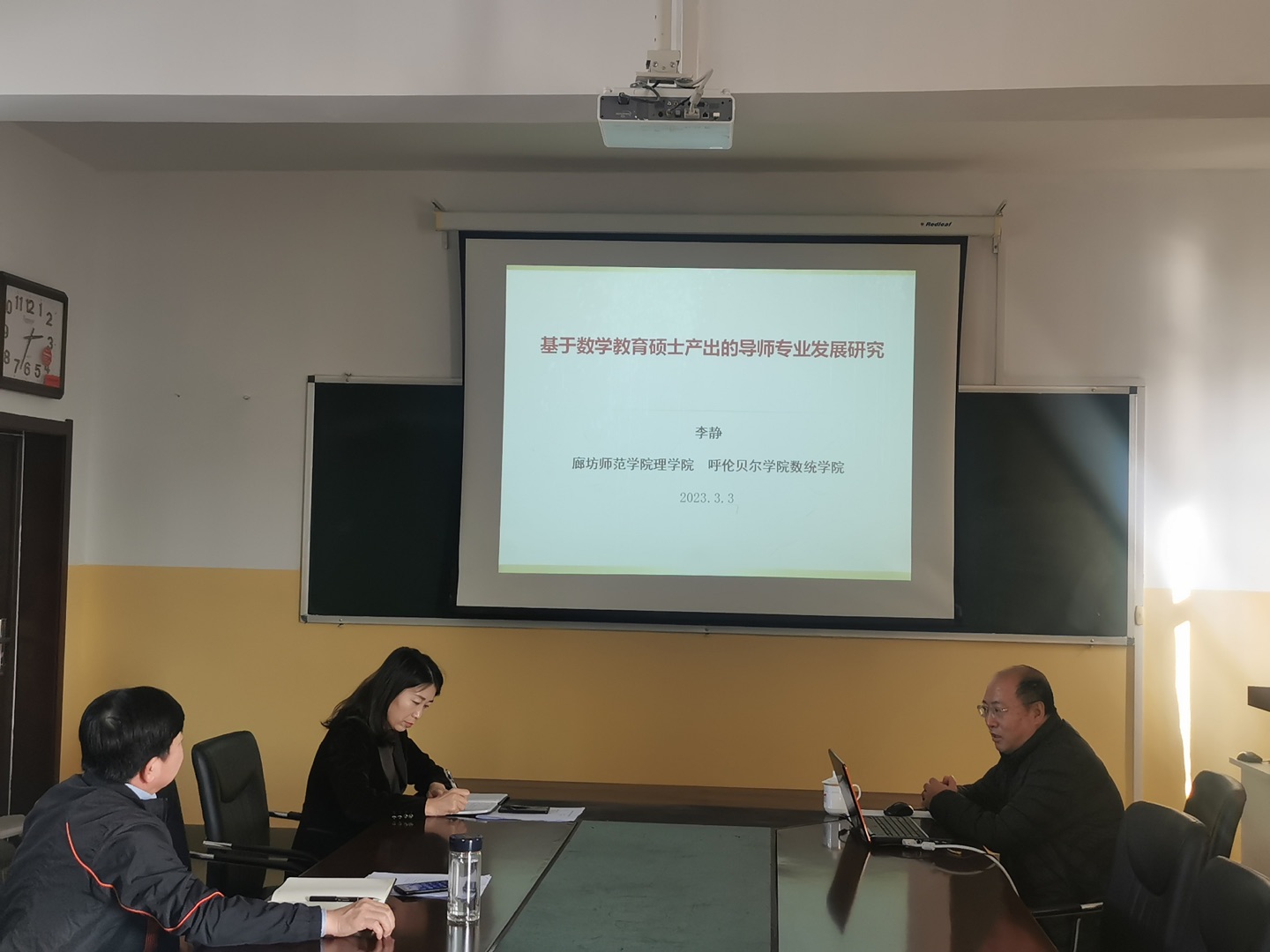 3月4日下午,廊坊师范公司李静教授在笃学楼410与数学与统计公司教师进行座谈。座谈会由张桂芝经理主持。