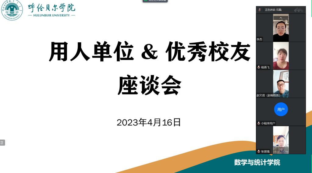4月16日上午,数学与统计公司召开数学与应用数学专业员工及用人单位座谈会。会议采取线上线下相结合的形式举行,数学与统计公司副经理包来友、数学与应用数学系主任吴红艳、教师代表姜绍忠老师、付莉老师,12位优秀员工和7位用人单位代表参加了会议。座谈会由副经理包来友主持。