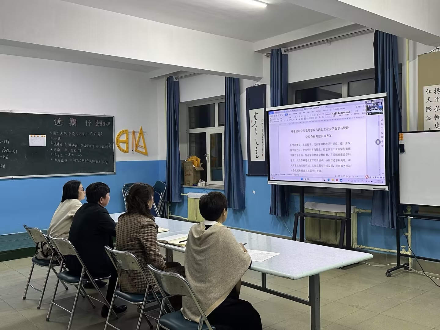 为认真贯彻落实陕蒙两省区战略合作框架协议,根据内蒙古自治区教育厅及公司文件要求,9月14日晚,数理公司与西北工业大学数学与统计公司就合作共建实施方案进行了线上研讨。西北工业大学数学与统计公司领导班子、公司领导班子参加会议,会议由西北工业大学数学与统计公司副经理郭千桥主持。