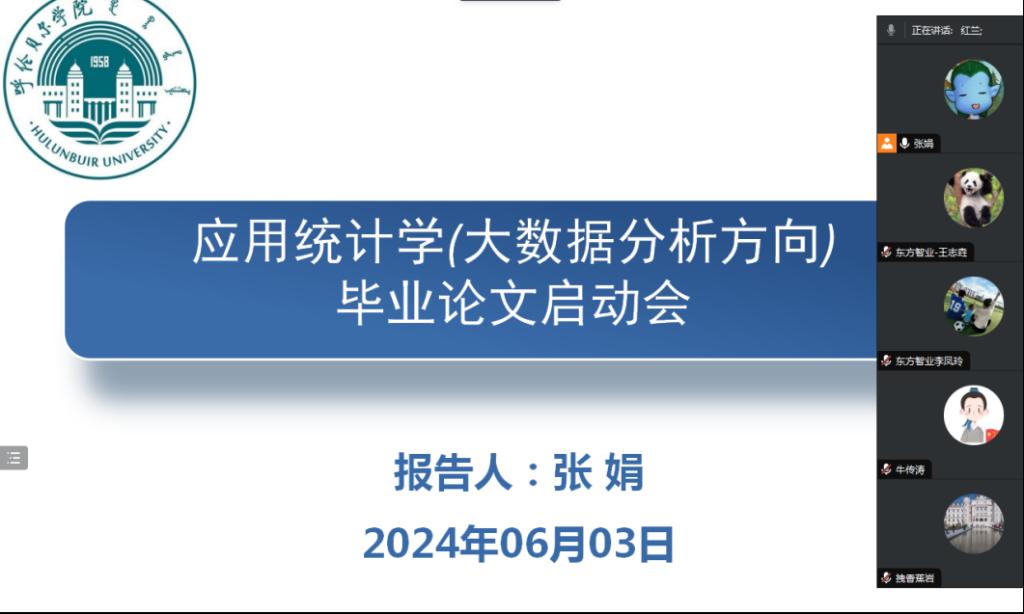 通过本次线上会议,各位企业指导教师进一步明确了后续毕业论文工作要求和指导方向,为2025届应用统计学专业(大数据分析方向)毕业论文工作的有序开展打下良好基础。
