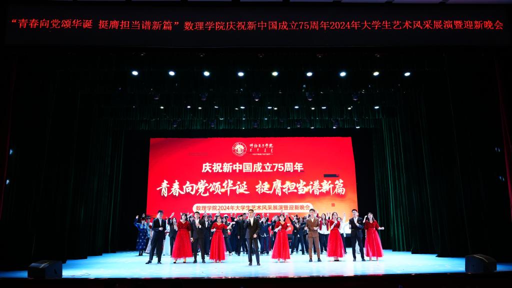 当晚,现场灯光璀璨、气氛热烈,师生齐聚一堂,以艺术表演的方式向祖国母亲献上数理学子的深情祝福。晚会节目形式丰富多样,涵盖了歌曲、舞蹈、诗歌朗诵、乐器演奏等,动感十足的青春舞曲、韵味悠长的民族音乐、慷慨激昂的诗歌朗诵展现了老员工积极向上的精神风貌和多才多艺的青春风采。