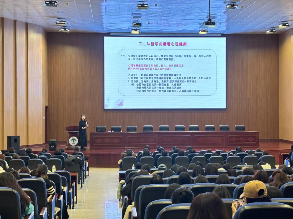 讲座中,谢春辉从多个维度深入剖析高品质女生的特质与养成方法,分享实用的心理健康知识和应对压力、焦虑的技巧,向师生们讲解了如何建立积极的自我认知,如何打造健康的情感关系等。她提到,健康的心理让女生在面对困难时坚韧不拔,在遭遇挫折时迅速调整,在享受成功时保持清醒;健康的心理赋予人爱与被爱的能力,促进人拥有和谐人际关系,在人生的舞台上自信起舞。